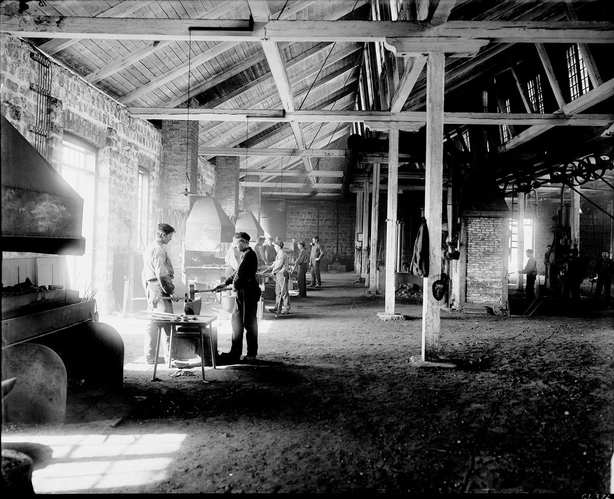 Forsbacka jernverk. Smedjan. Sedan 1600-talet har järnhantering varit ortens huvudnäring. Flera valsverk uppfördes mellan 1872 och 1904