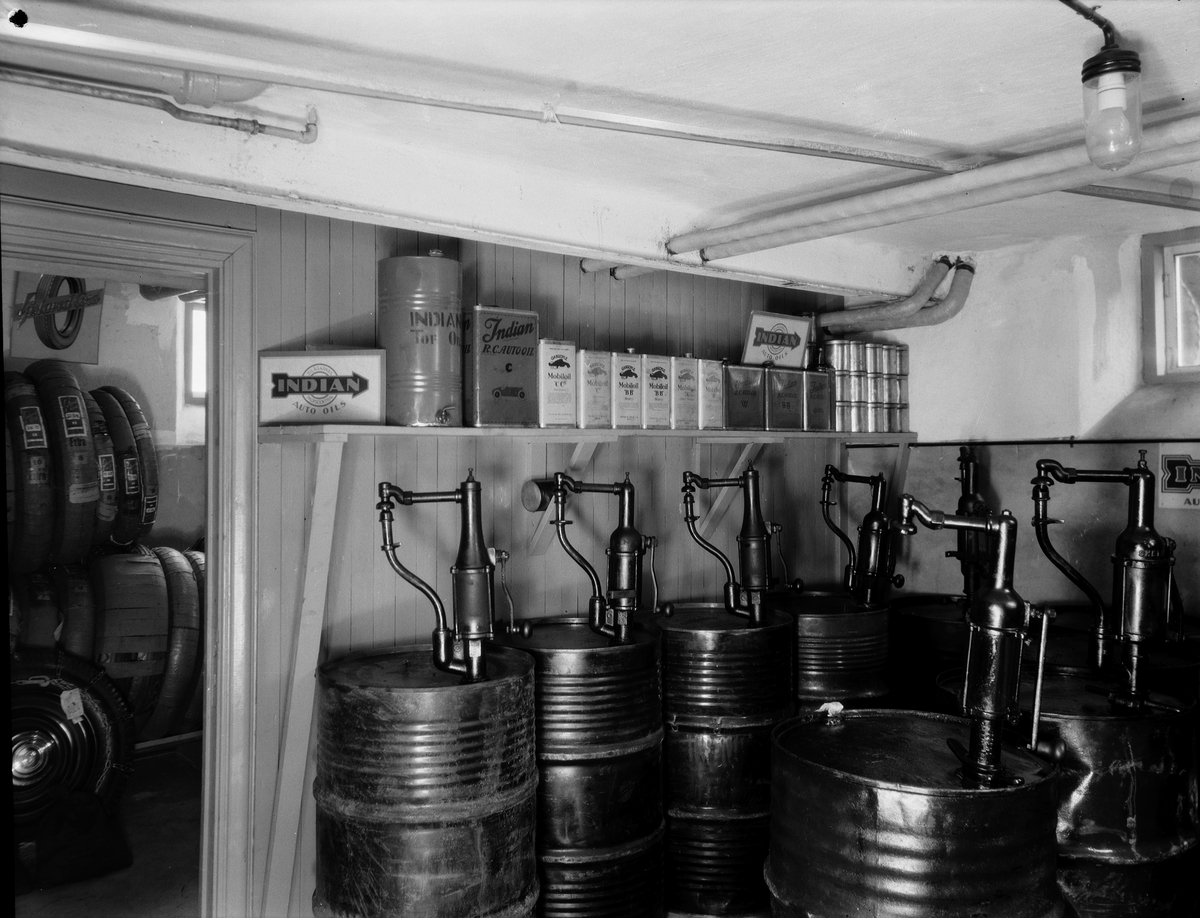 Bildäck, Bensinfat och motorolja. Ej säker om adressen stämmer med bilden. Bytte senare namn till Gävle Drosk - Bilägares Inköpsförening och flyttade till Staketgatan 10