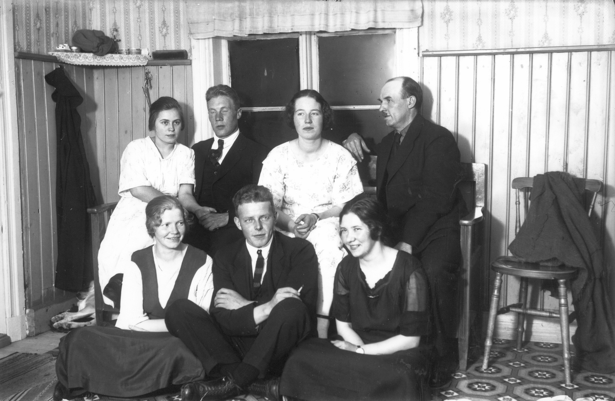 I bakre raden från vänster: nr 2 Karl Olsson, Lenninge 4:47 (född 1900), nr 4 Emil Nilsson, Lenninge 6:44 (född 1886). I främre raden: nr 2 Herbert Olsson, nuvarande Lenninge 14:2 (född 1898). Kvinnorna okända.