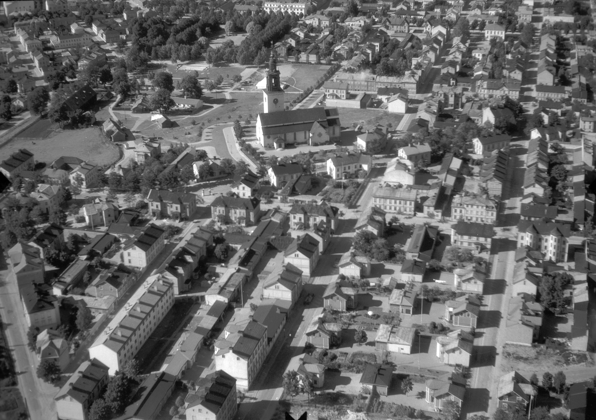 Gävle. Brynäs med bland annat Staffans kyrka, Stenebergsparken med stor "plaskbassäng" och ett stort tält (cirkus), Kindergarten, Sockerbruksladan.