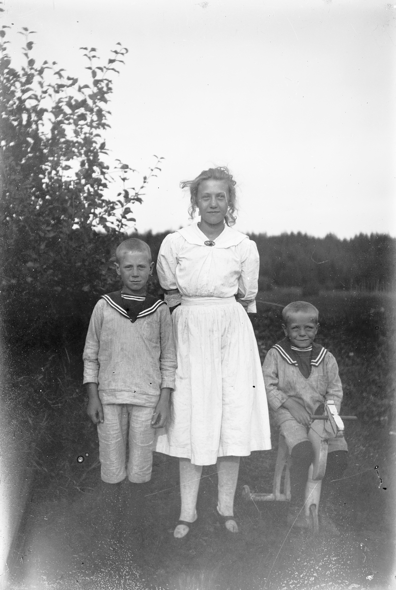 Frida Brodin blev gift Nordström, med sina bröder Fritx och Sigge, Enstabo