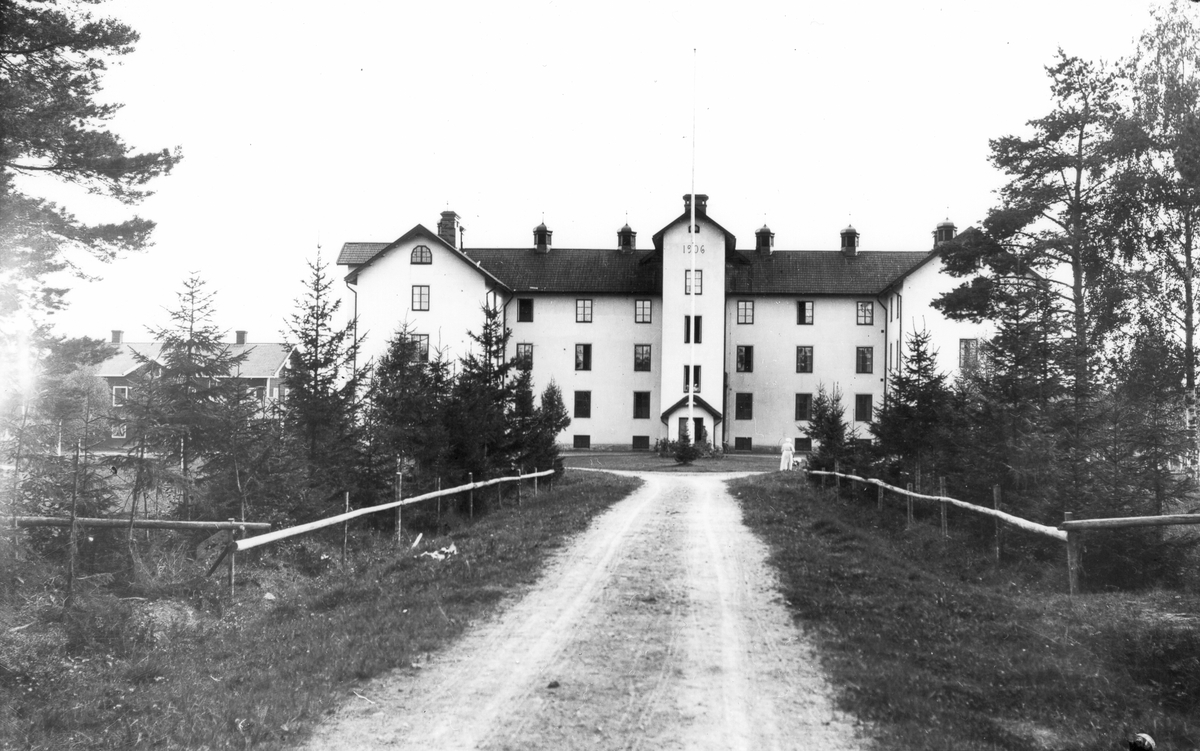Det s k "Slottet i dalen", som då var fattighus i Bollnäs. (Åke Wassing bodde där.) Byggnaden till vänster är epiemisjukhuset (bortrivet).