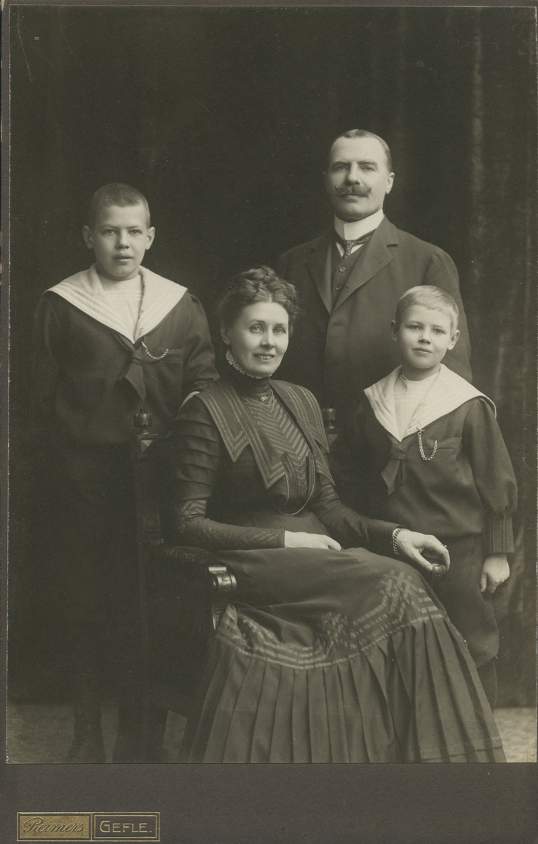 Familjeporträtt. Gustaf Swedlund med fru Ellen Reuterskiöld samt söner.