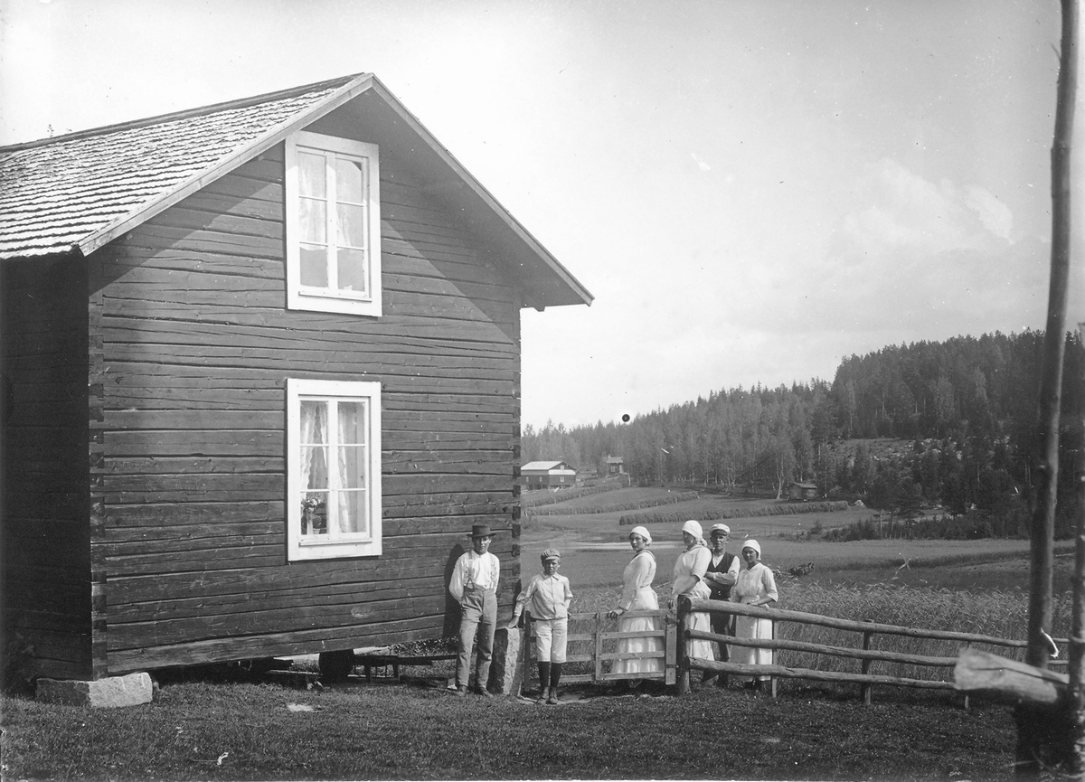 Bergsänge: "Per-Ers" stuga i förgrunden, "Lars-Pers" stuga i bakgrunden.