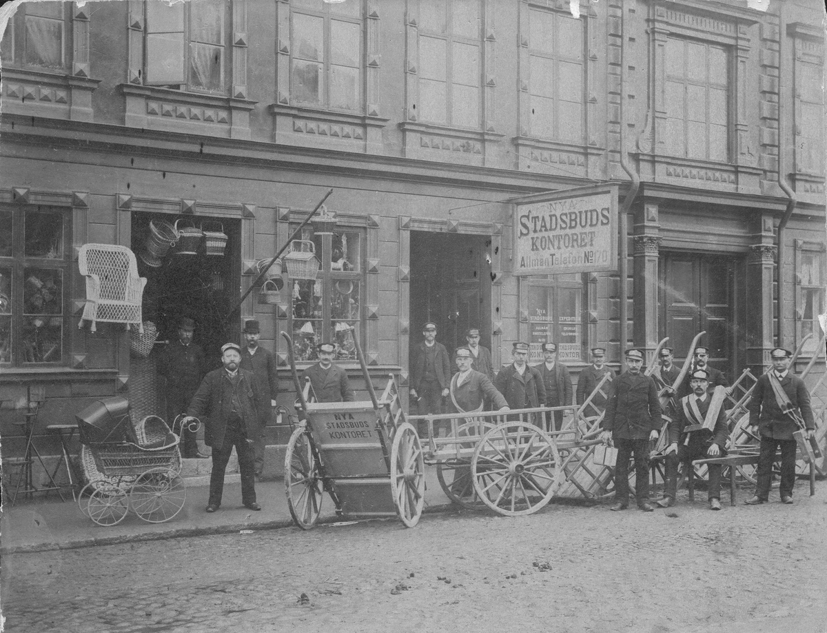 Exteriör av Nygatan 22 med Romeis korgmakeri och Nya Stadsbudskontoret.