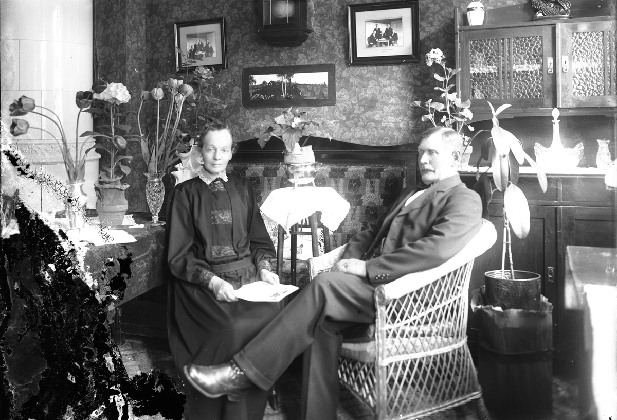 Kvinna och man i salongen.