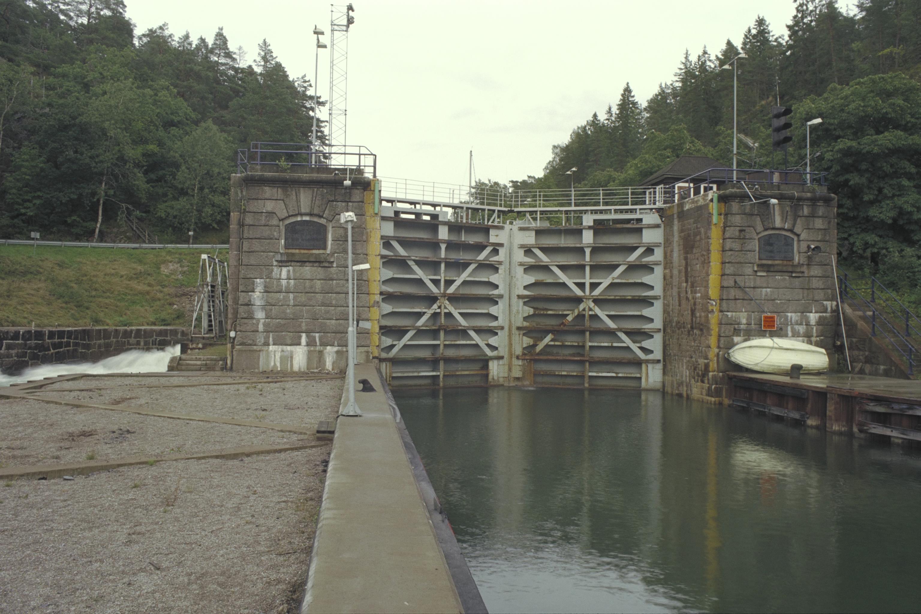 Sista porten innan man kommer in i Göta älv. Nedre slussen i 1916-års slussled. Används än idag för trafik. (2010)