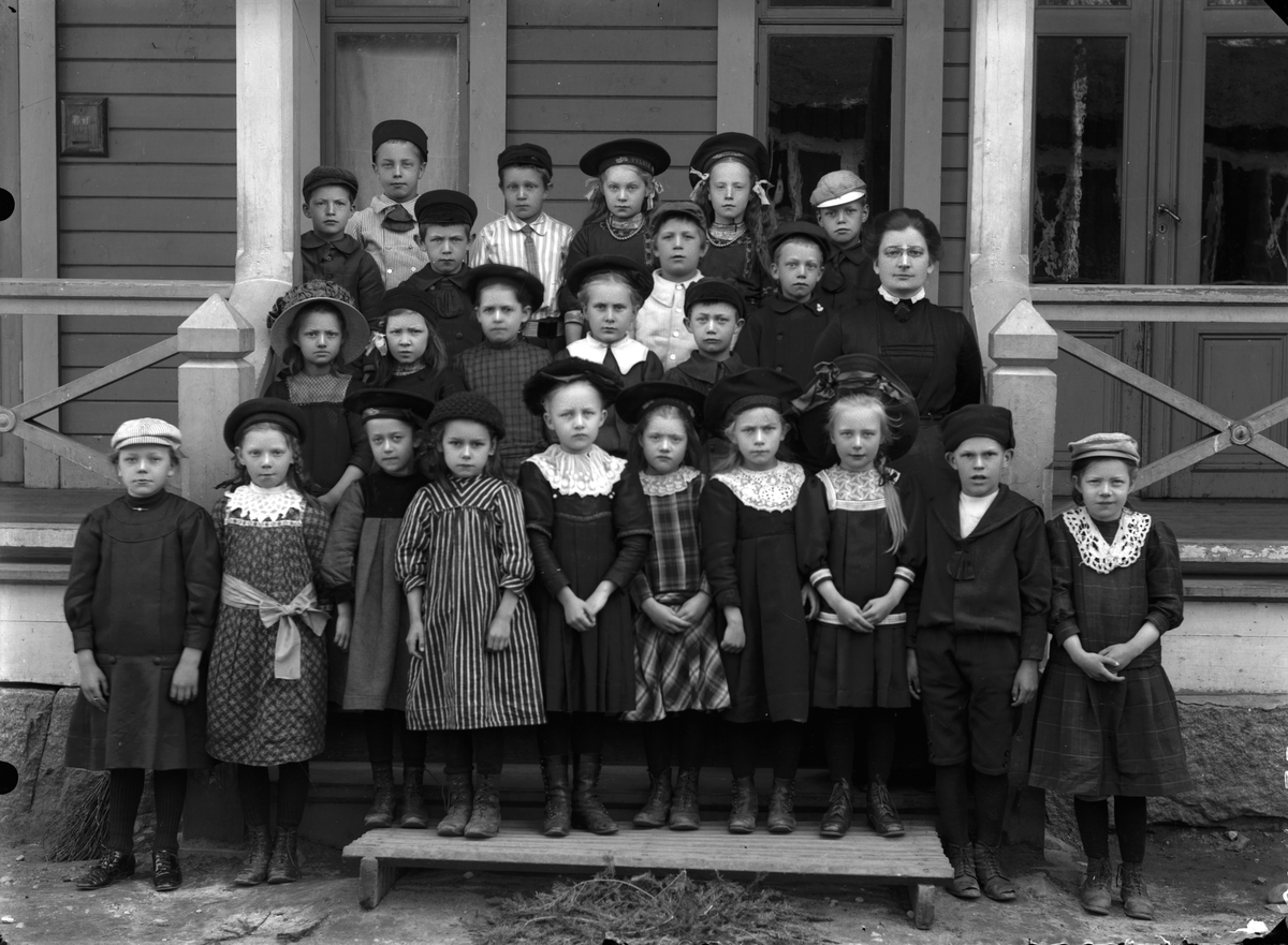 Lärarinna med en skolklass, folkskolan i Norrsundet.