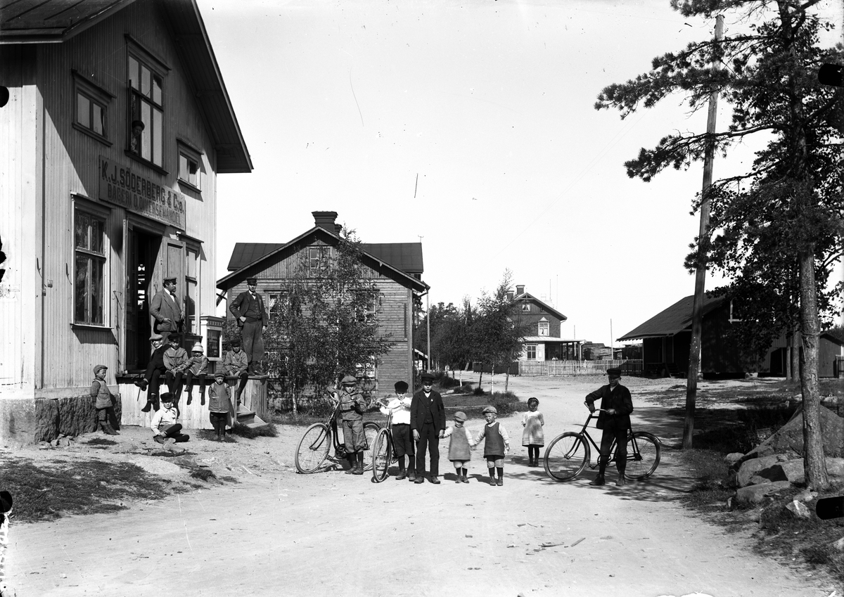 Folk utanför "K.J. Söderbergs bageri och diversehandel".