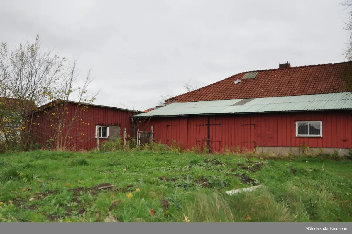 Ladugård på fastigheten Ranntorp 2:20 i Ranntorp, Lindome, i Mölndals kommun. Fotografiet är taget den 22/10 2014. Byggnadsdokumentation inför rivning.