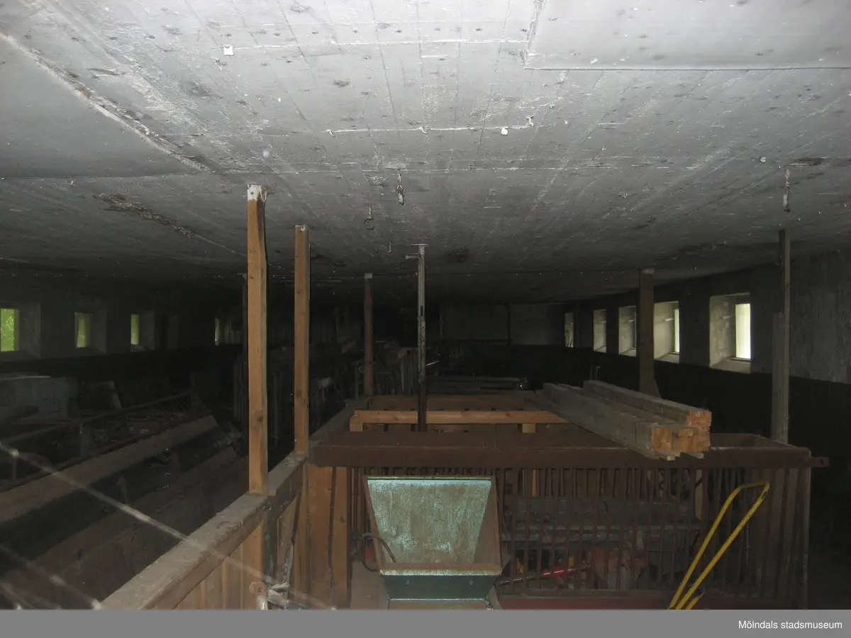 Ladugårdsinteriör. Byggnad tillhörande SiS ungdomshem Fagared i Lindome. Fastighetsbeteckning är Fagered 3:1. Fotografi taget den 29 juni 2012. Byggnadsdokumentation inför rivning.