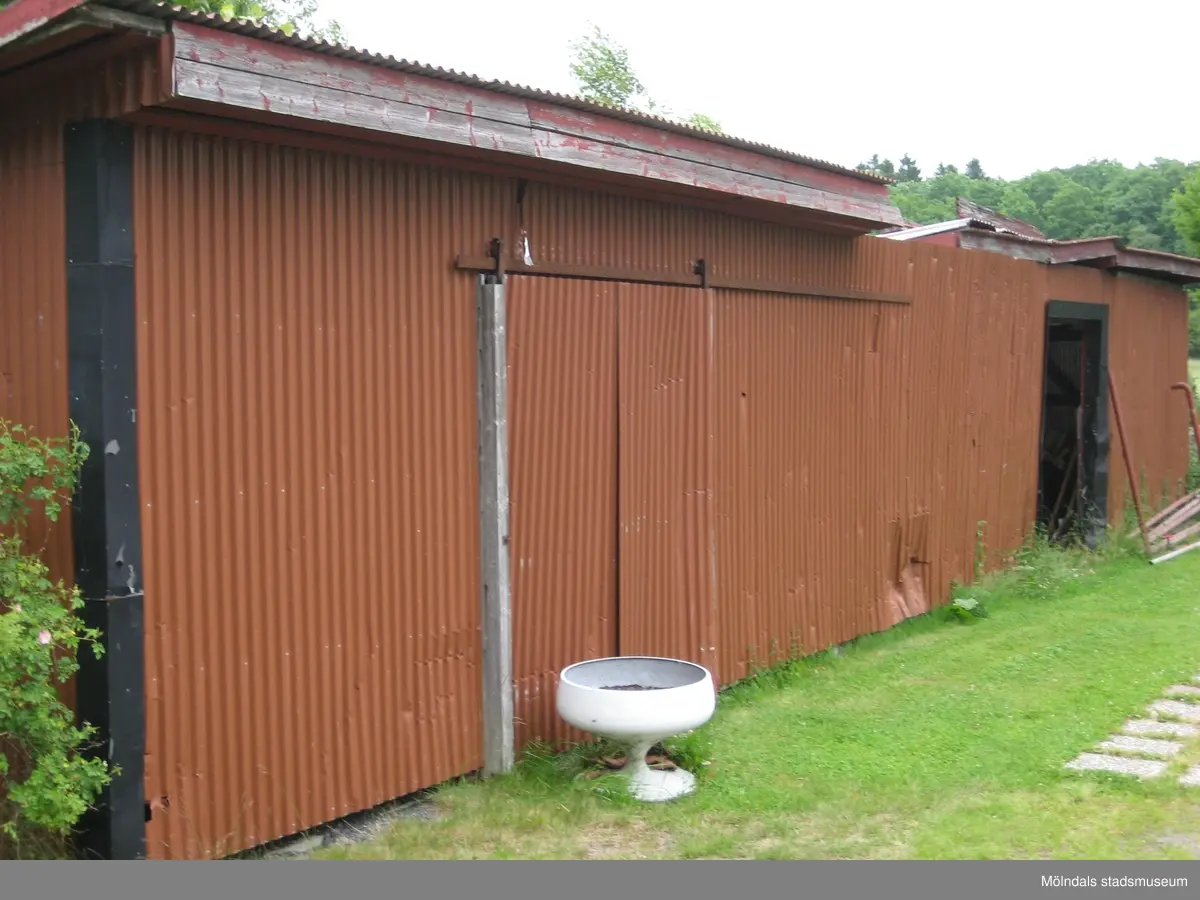 Ett rött skjul tillhörande SiS ungdomshem Fagared i Lindome. Fastighetsbeteckning är Fagered 3:1. Fotografi taget den 29 juni 2012. Byggnadsdokumentation inför rivning.