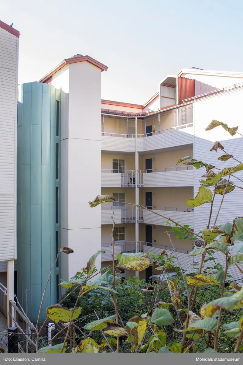Baksidan av bostadshuset Streteredsvägen 3 i Våmmedal, Kållered, den 6 oktober 2016. Vy från Brattåsvägen,