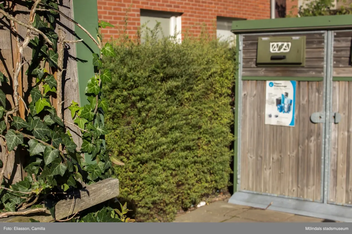 Återvinningskärl finns på varje gård till bostadshusen vid Våmmedalsvägen. Här ses ett av dem. Våmmedal i Kållered den 6 oktober 2016.