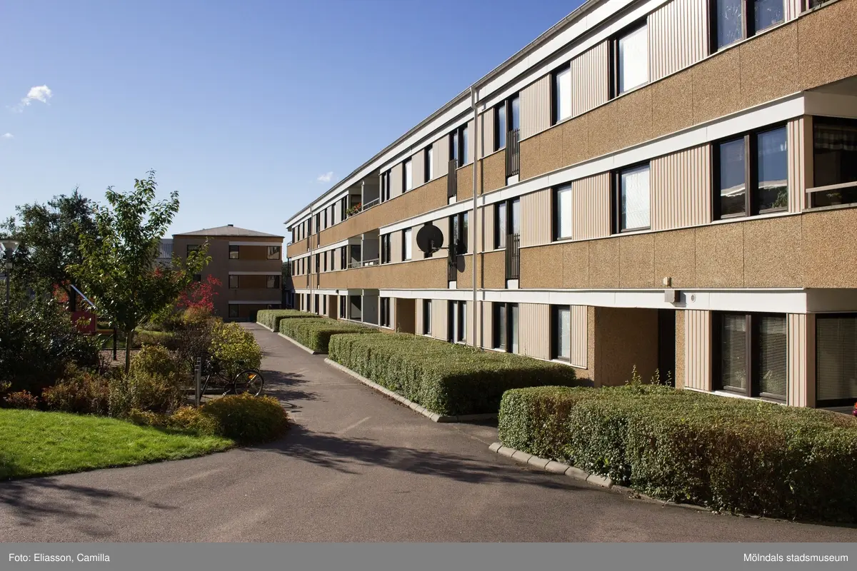 Ett av husen i bostadsområdet Dotegården i Lindome den 4 oktober 2016. På gården skymtas även en lekplats.