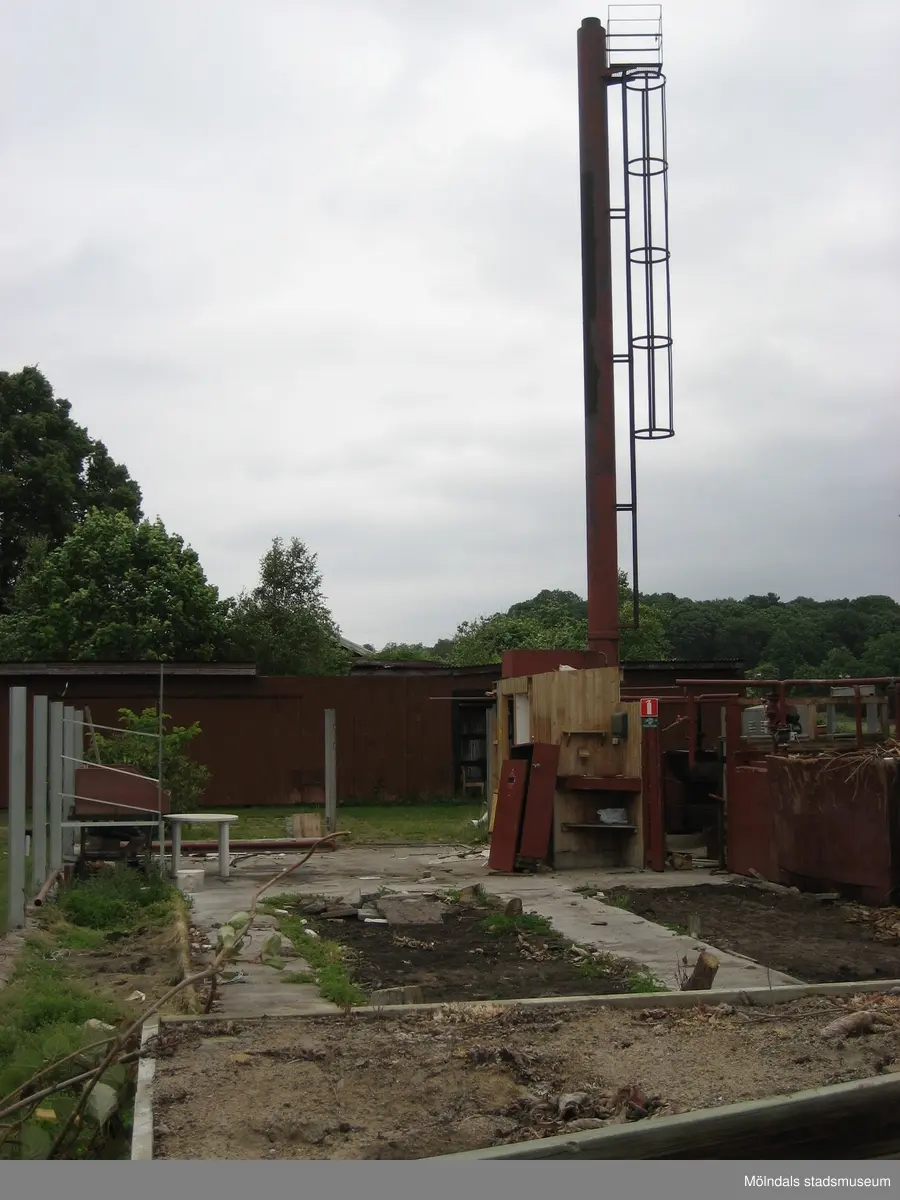Resterna av ett rivet växthus tillhörande SiS ungdomshem Fagared i Lindome. Fastighetsbeteckning är Fagered 3:1. Fotografi taget den 29 juni 2012. Byggnadsdokumentation under rivning.