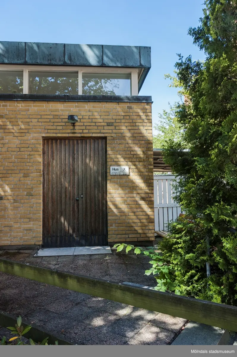 Entré till byggnad X tillhörande Mölndals sjukhus i Bosgården, Mölndal. Fotografi taget den 10 juni 2014. Byggnadsdokumentation inför rivning.