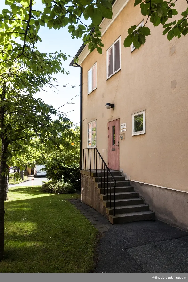 Yttertrappa och entré till byggnad U2 tillhörande Mölndals sjukhus i Bosgården, Mölndal. Fotografi taget den 10 juni 2014. Byggnadsdokumentation inför rivning.