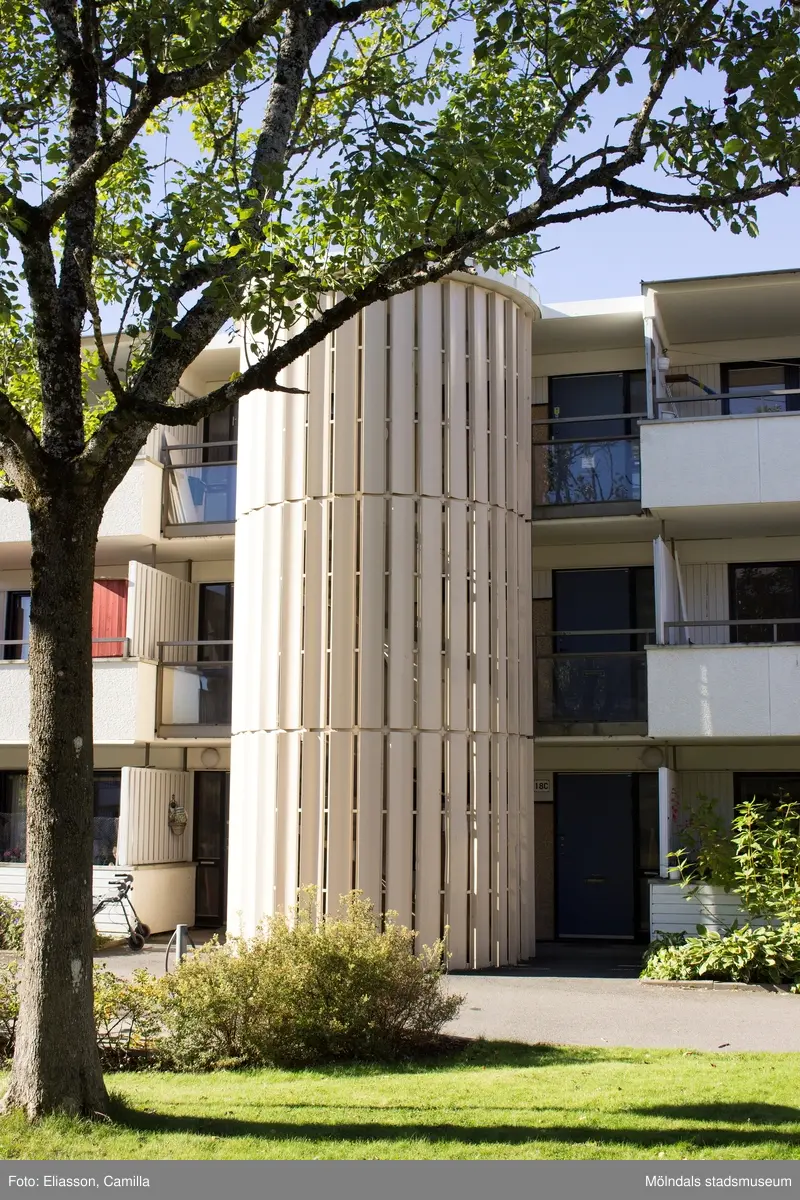 Fasad med trapphus till bostadshuset Dotegården 18 C i Lindome, den 4 oktober 2016. Fasaden vetter mot öster.