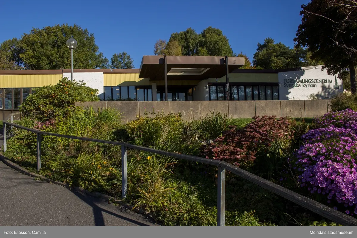 Gång upp samt entré till Församlingscentrum Lindome med adress Annestorpsvägen 1 i Annestorp, Lindome, den 4 oktober 2016. Fasad mot söder.