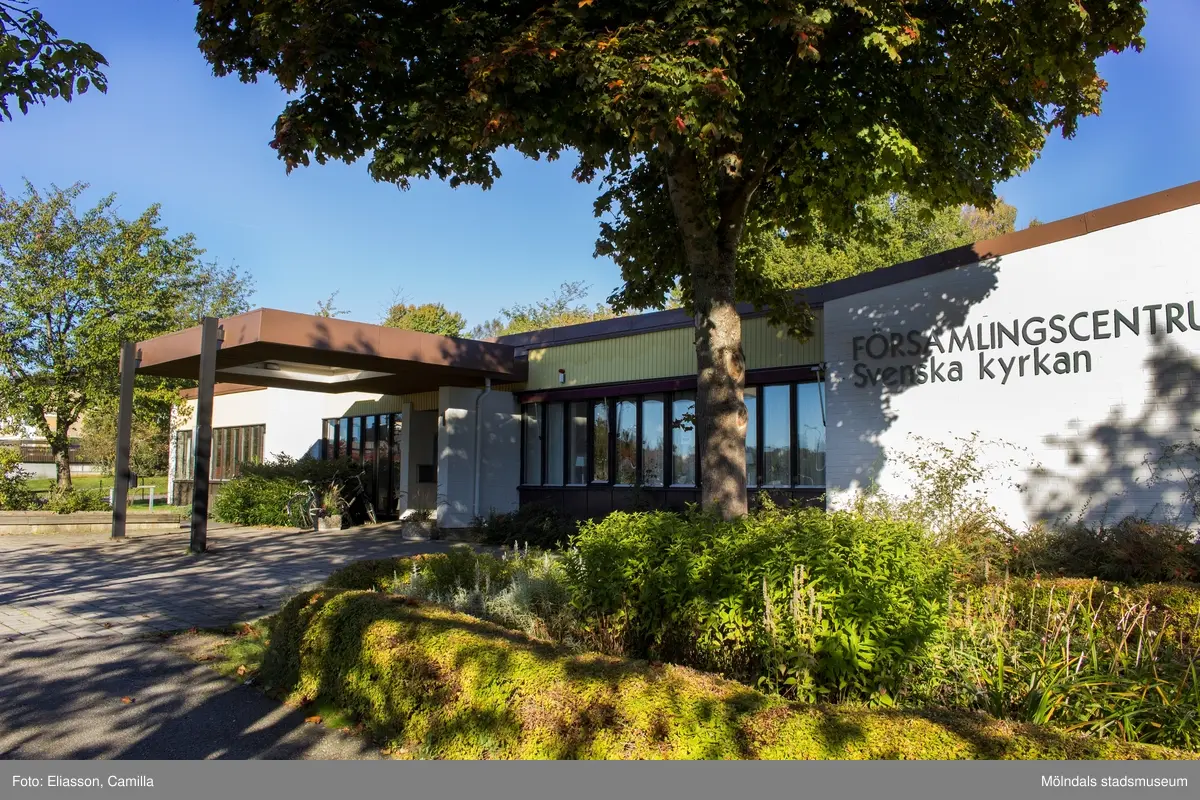 Församlingscentrum Lindome med adress Annestorpsvägen 1 i Annestorp, Lindome, den 4 oktober 2016. Fasad mot söder.