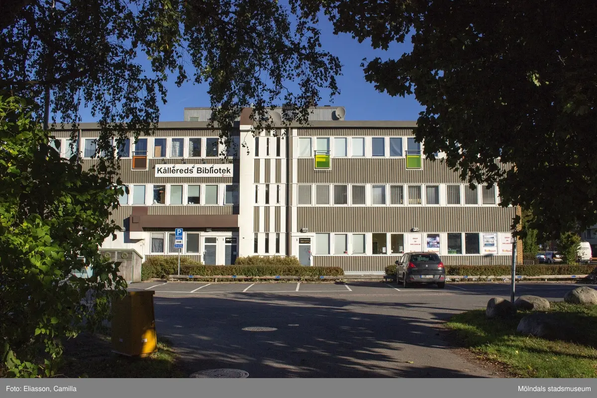 Södra fasaden till huset Hagabäcksleden 1-13 i Kållereds centrum den 6 oktober 2016. Byggnaden inrymmer bland annat Kållereds bibliotek med nr 9.