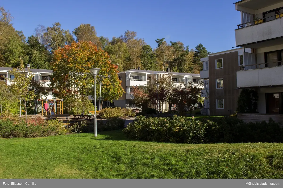 Innergård till bostadsområdena Smörkullegården och Dotegården i Lindome den 4 oktober 2016. På gården finns en lekplats.