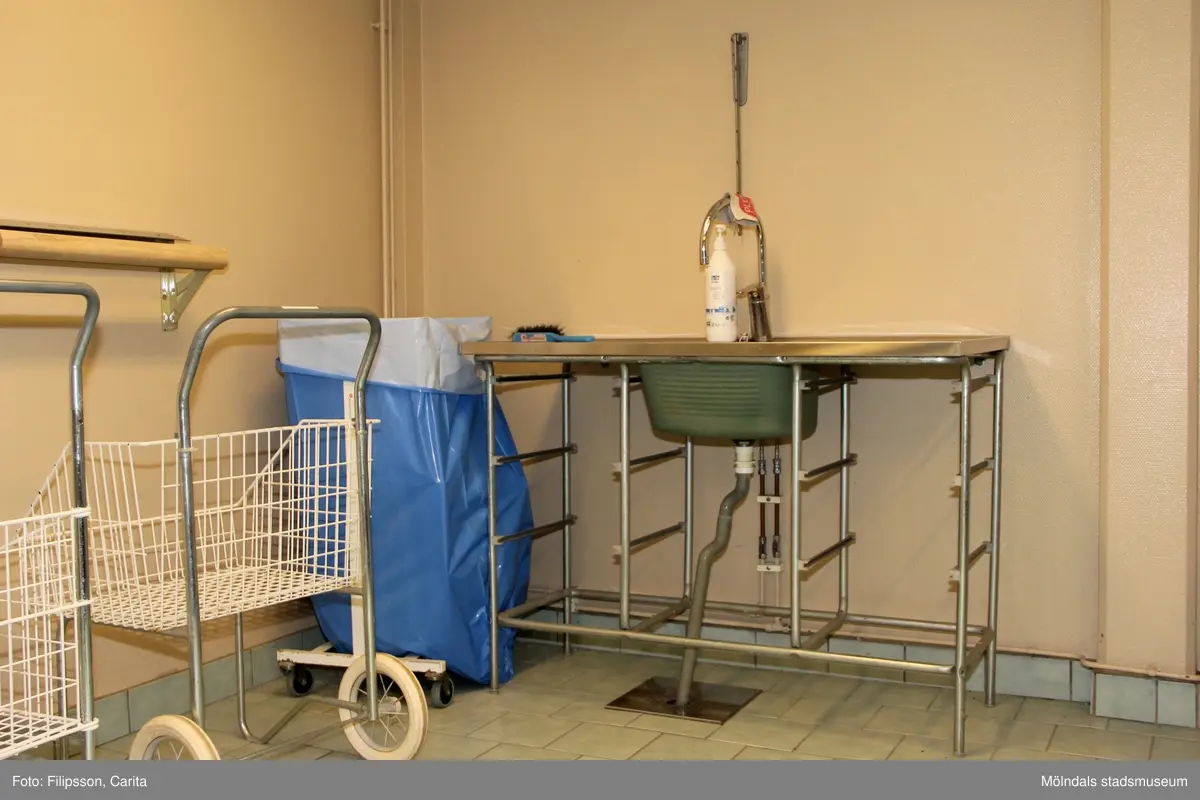 Diskho i tvättstuga. Källare till något av husen med adresserna Bergmansgatan 4, 6, 8 och 10 i Mölndals Centrum. Fotografi taget den 27 februari 2018. Byggnadsdokumentation inför rivning.