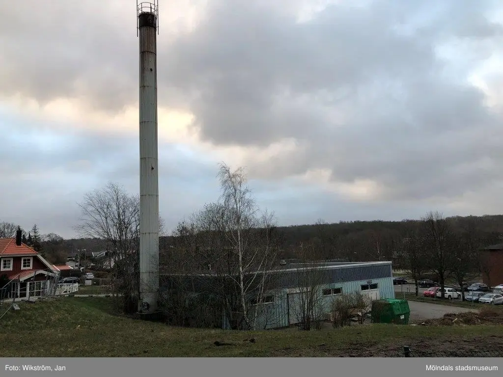 Elpanncentralen med adress Våmmedalsvägen 23 i Våmmedal, Kållered, i Mölndals kommun. Fastighetesbeteckning är Våmmedal 8:9. Panncentralen byggdes 1970. Riven för nybyggnad av anläggning för p-platser. Fotografi taget i mars 2020. Byggnadsdokumentation inför rivning.
