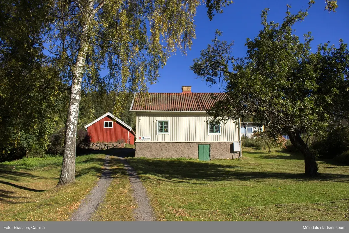 Våmmedal i Kållered den 6 oktober 2016. Ladugård och bostadshus med adress Streteredsvägen 7. Vy i riktning mot norr.