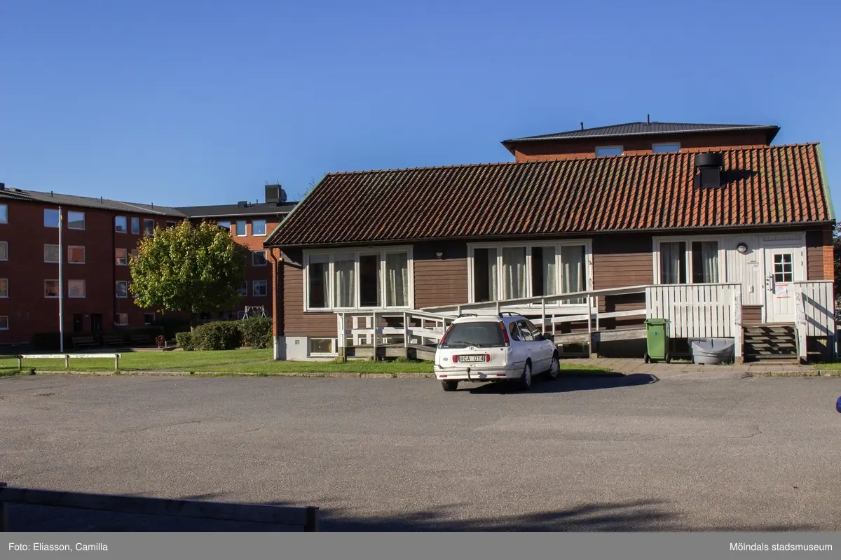 Kållereds församlingshem, Våmmedal 3:118, med adress Våmmedalsvägen 16 i Våmmedal, Kållered, den 6 oktober 2016. Fasad mot öster. Församlingshemmet byggdes 1960.