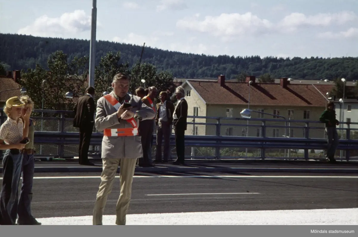 Bild från invigningen av Mölndals Bro i Mölndal, år 1975. I bakgrunden ses hus på Broslätt.