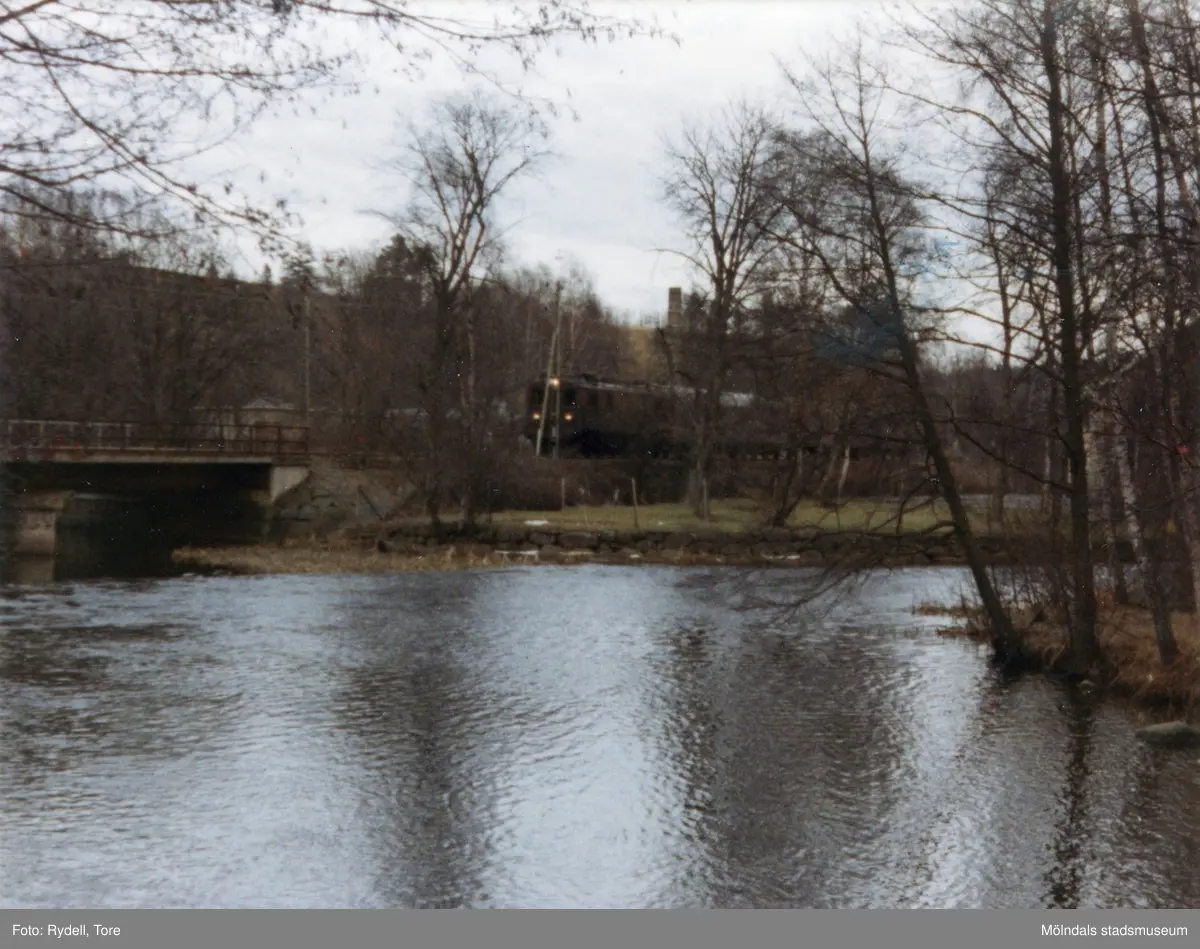 Mölndalsån uppströms från Rackarebron. Grevedämmet i Mölndal på 1970-talet.