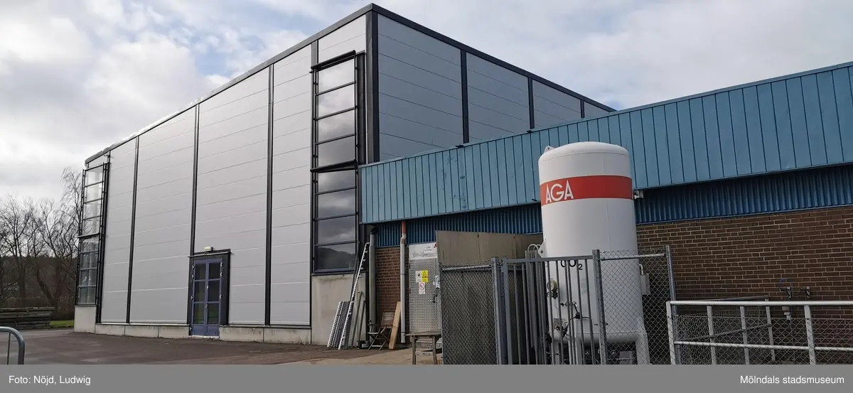 Åbybadet (ursprungligt namn är Åby Simhall) med adress Idrottsvägen 9 i Åbyområdet i Mölndal. Fasader mot öster. Fotografiet är taget den 12 februari 2020. Byggnadsdokumentation inför rivning.
