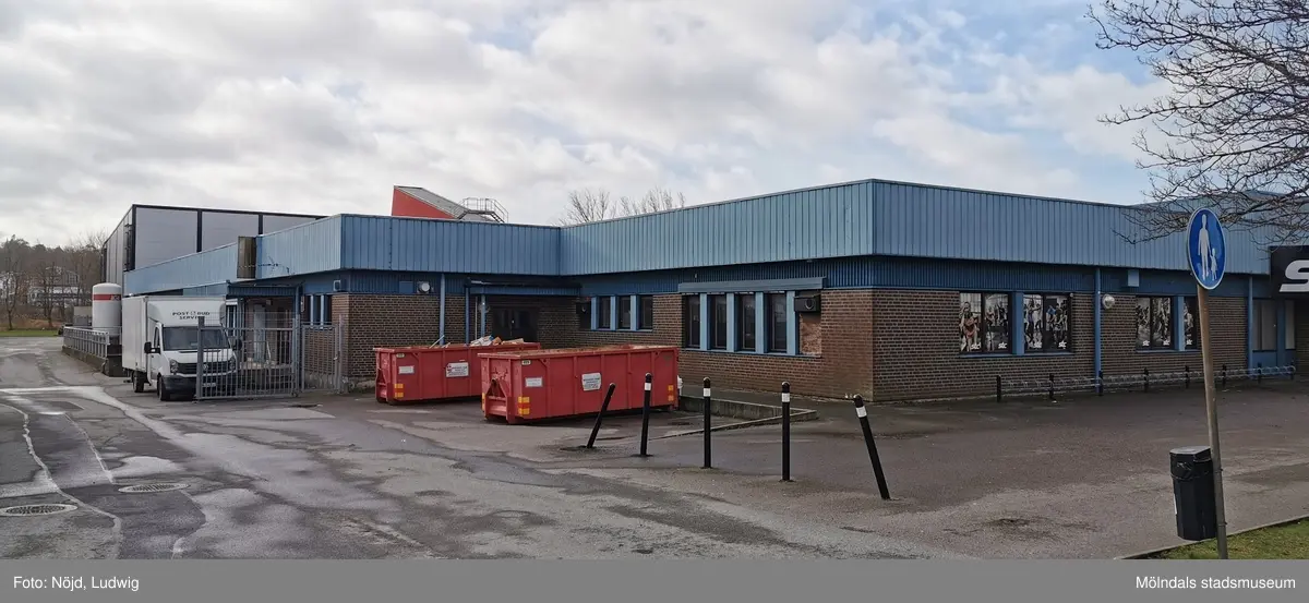 Åbybadet (ursprungligt namn är Åby Simhall) med adress Idrottsvägen 9 i Åbyområdet i Mölndal. Fasader mor öster och mot norr. Fotografiet är taget den 12 februari 2020. Byggnadsdokumentation inför rivning.
