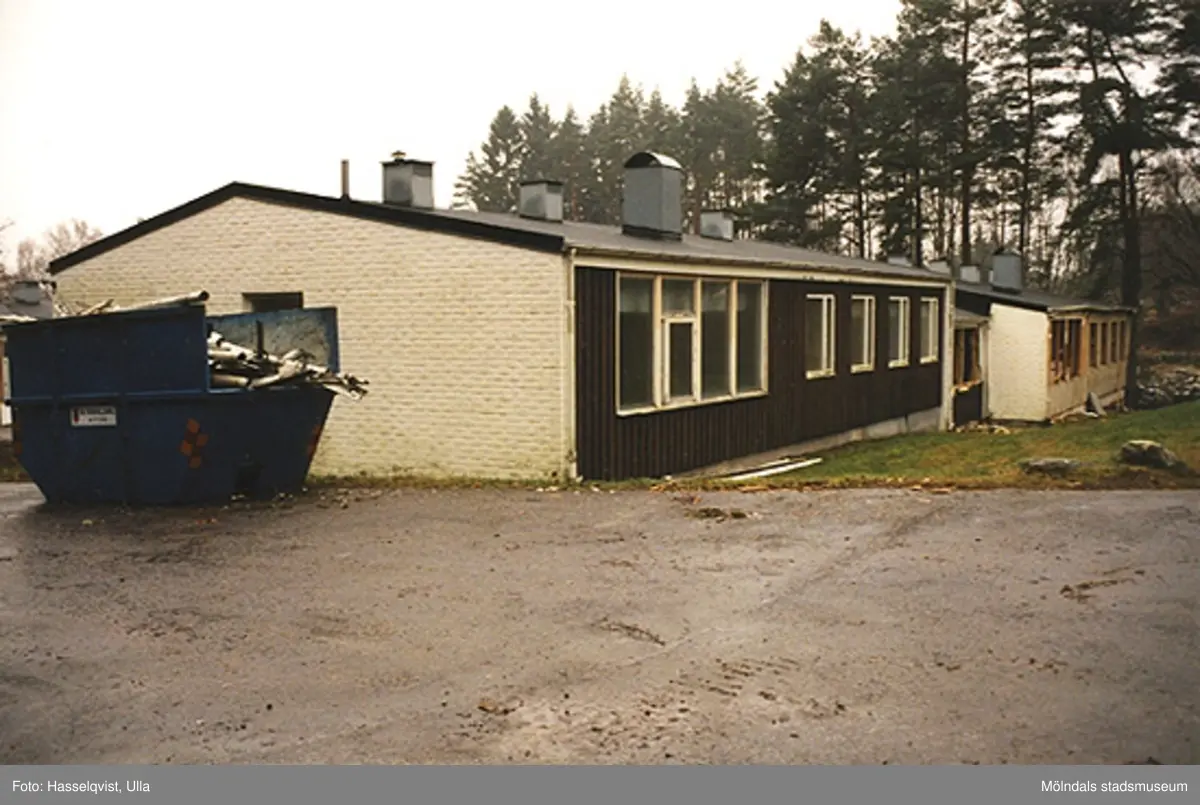 Före detta gruppbostäder vid Stretereds skolhem som byggs om till privatbostäder på Skogsbovägen i Stretered, Kållered, år 2000. Relaterade motiv: 2006_0144 - 0146.
