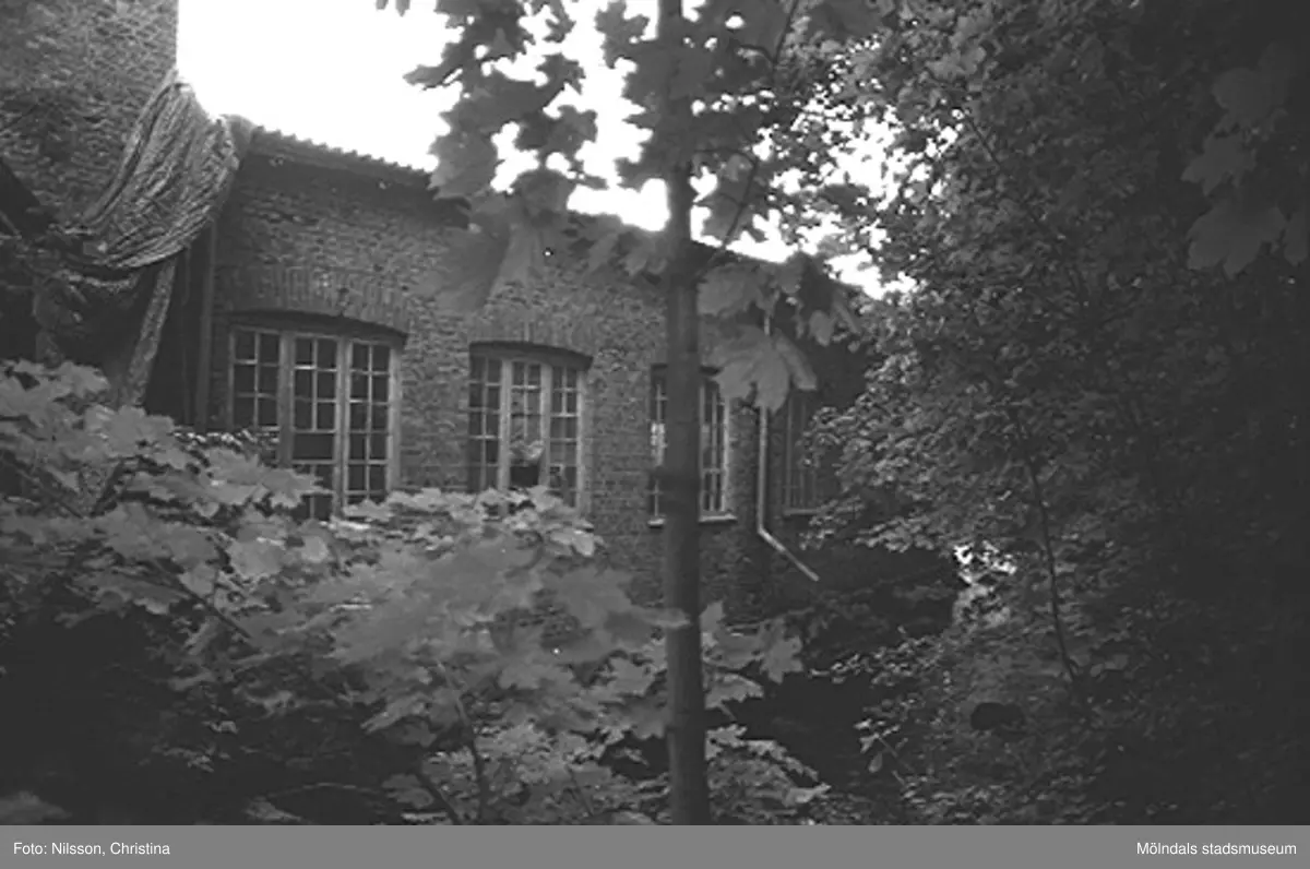 Titel: Kvarnfallet 31 i Grevedämmet, hösten 1994. Fabriksbyggnad i tegelsten vid vattendrag.