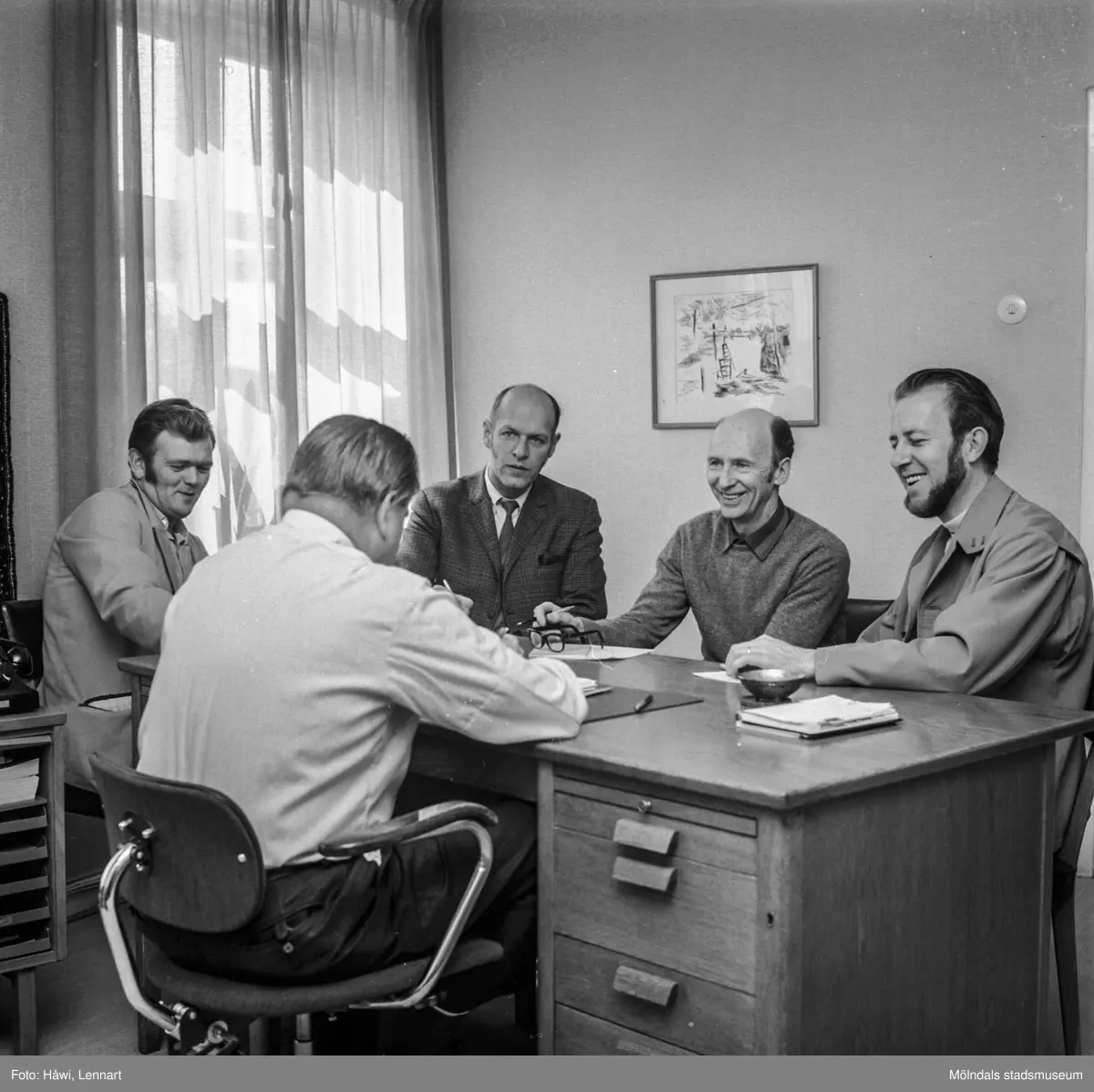 Fem män i sammanträde på pappersbruket Papyrus i Mölndal, 8/5 1972.