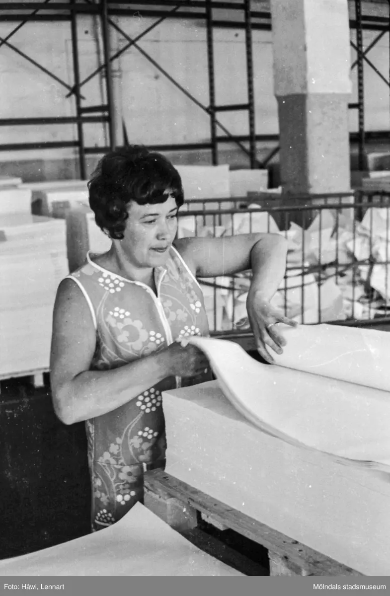 Barbro Jonasson i arbete med att sortera papper på pappersbruket Papyrus i Mölndal, hösten 1970.