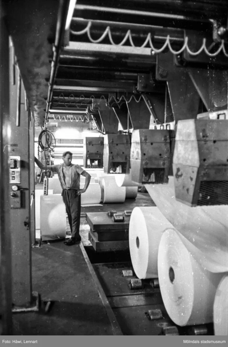 Man i arbete vid maskin på pappersbruket Papyrus i Mölndal, hösten 1970.
