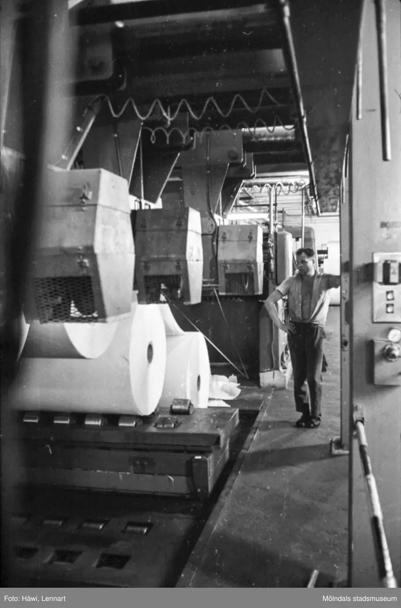 Man i arbete vid maskin på pappersbruket Papyrus i Mölndal, hösten 1970.