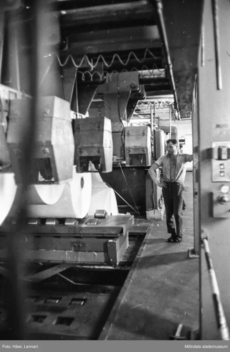 Man i arbete vid maskin på pappersbruket Papyrus i Mölndal, hösten 1970.