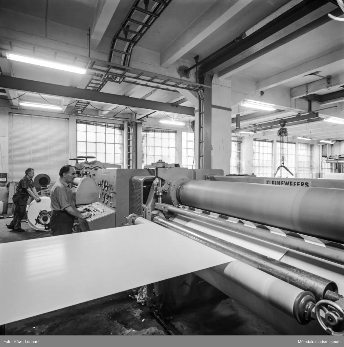 Man i arbete vid maskin på pappersbruket Papyrus i Mölndal, 1/10 1969.
