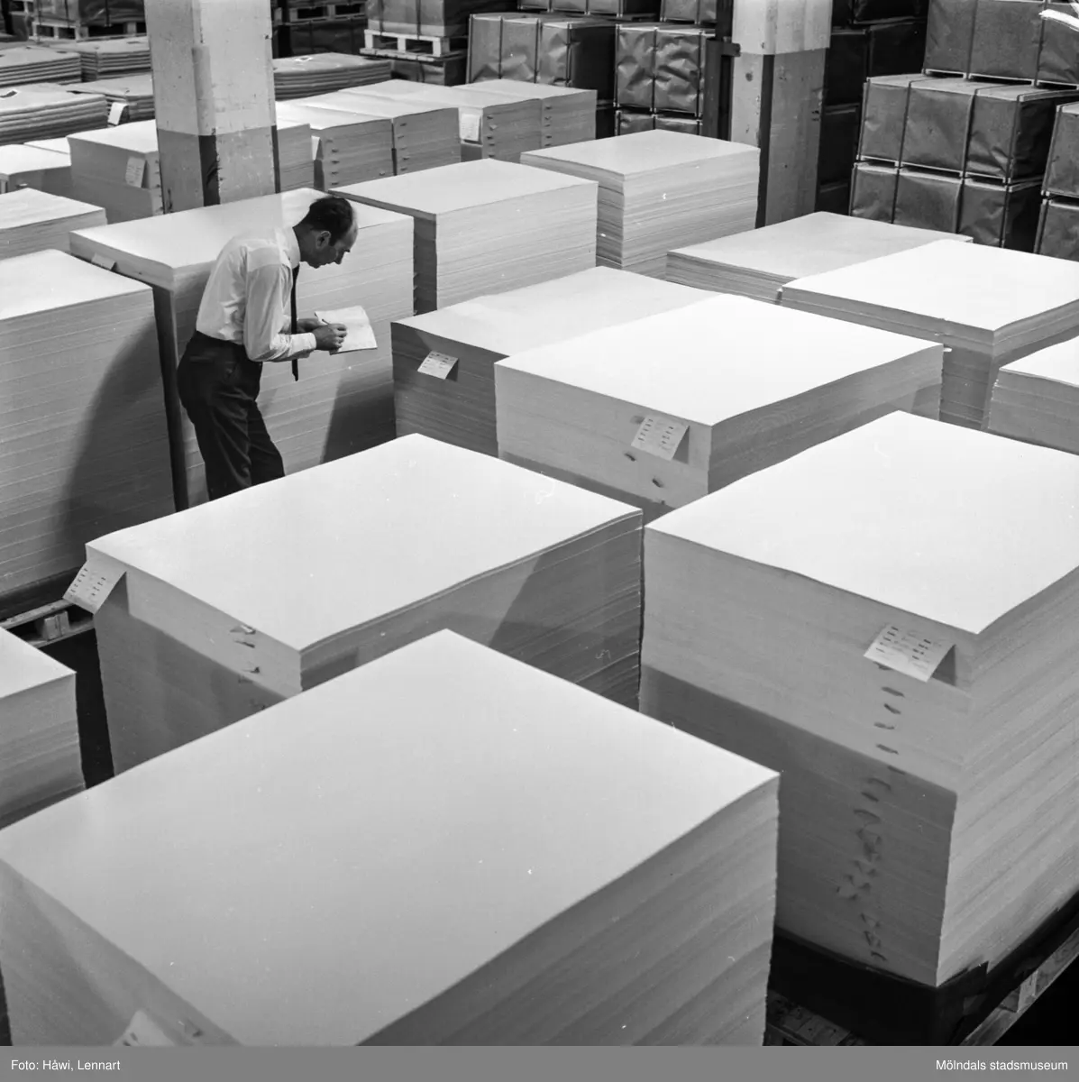 Man i arbete i lager på pappersbruket Papyrus i Mölndal, 8/9 1970.