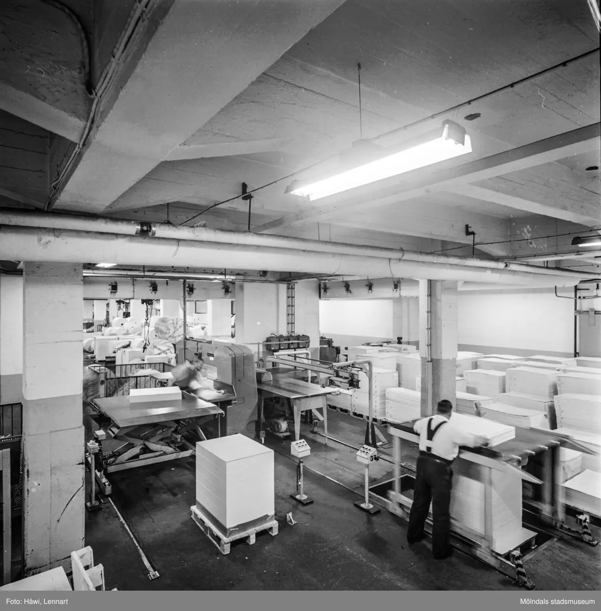 Män i arbete vid maskin på pappersbruket Papyrus i Mölndal, 8/9 1970.