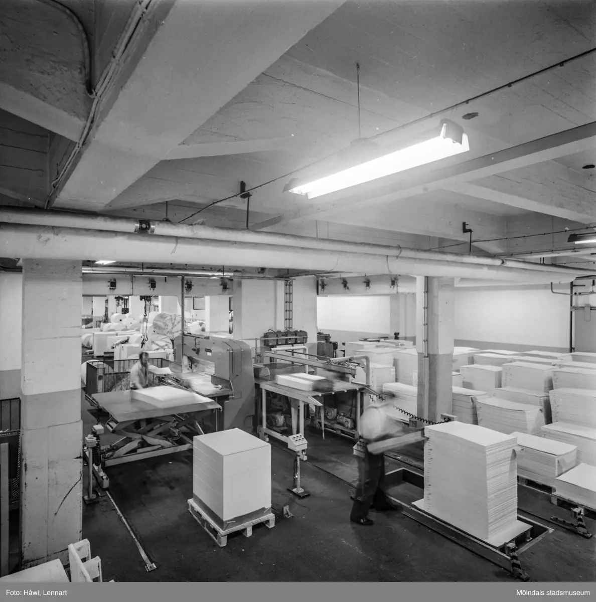 Män i arbete vid maskin på pappersbruket Papyrus i Mölndal, 8/9 1970.
