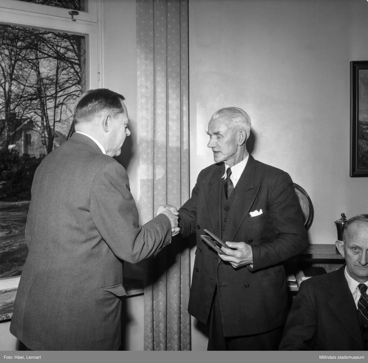 AB Mölndal, utdelning av minnesgåvan 1958. Pappersbruket Papyrus i Mölndal, 21/1 1958.