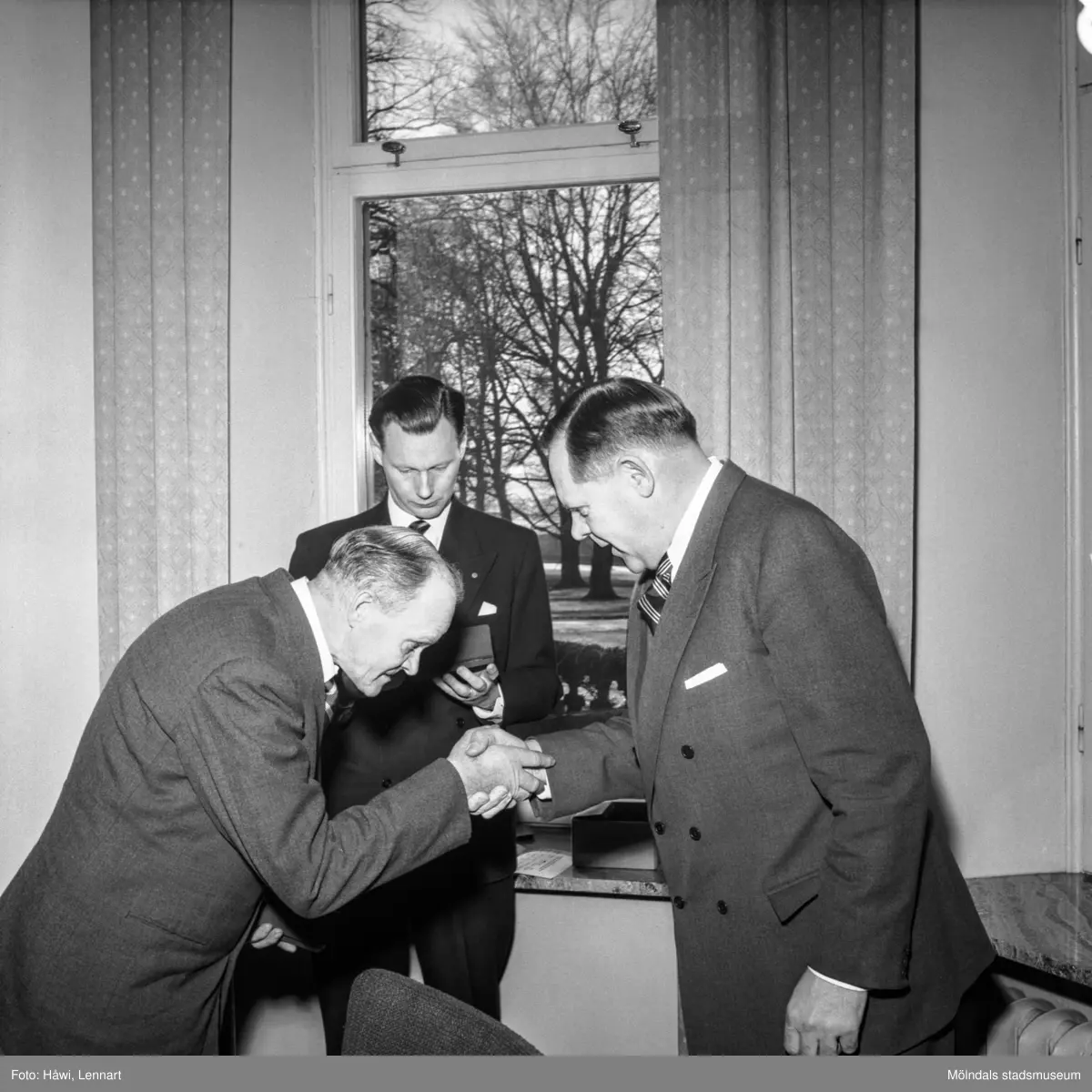 AB Mölndal, utdelning av minnesgåvan 1958. Pappersbruket Papyrus i Mölndal, 21/1 1958.