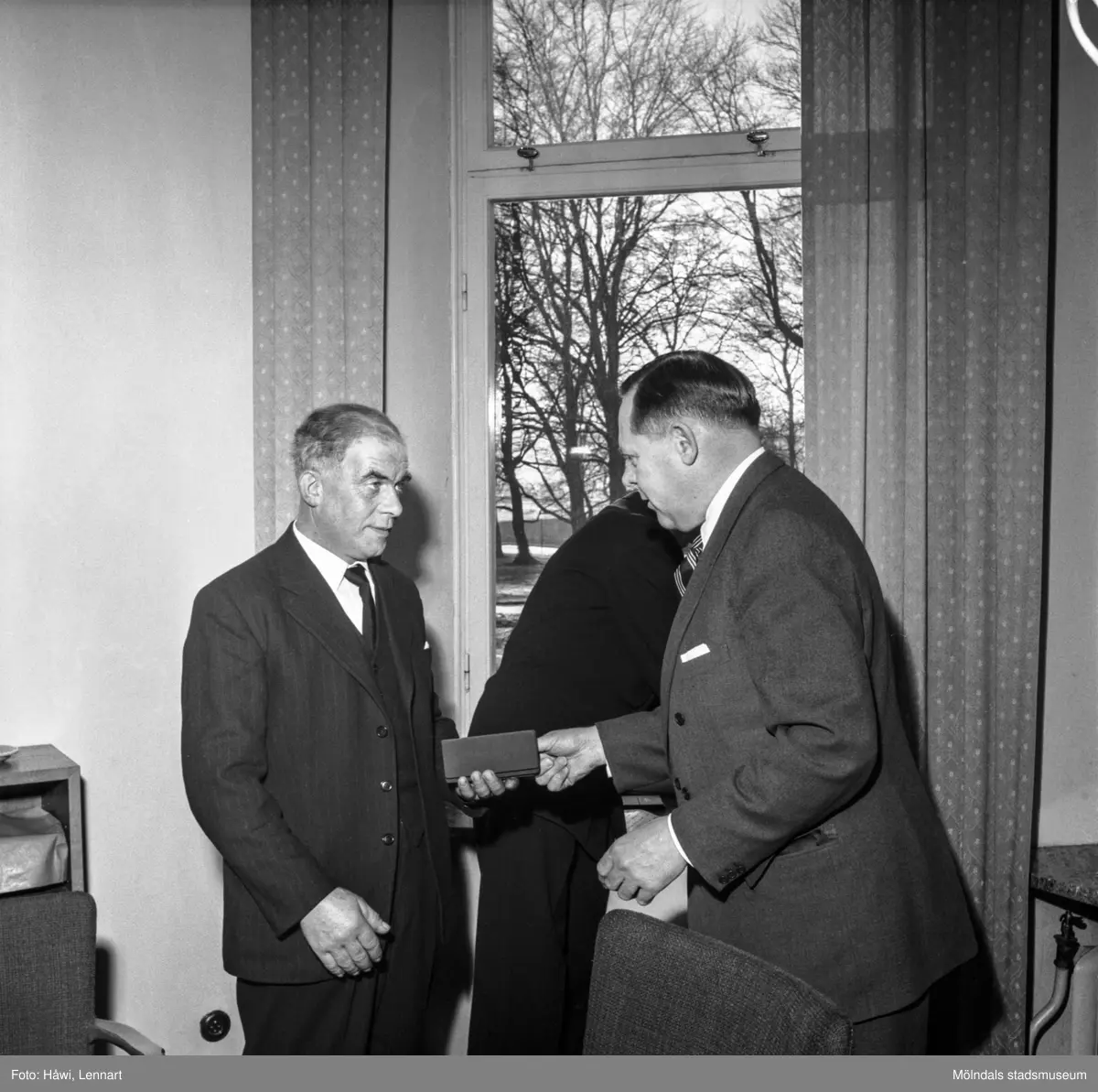 AB Mölndal, utdelning av minnesgåvan 1958. Pappersbruket Papyrus i Mölndal, 21/1 1958.
