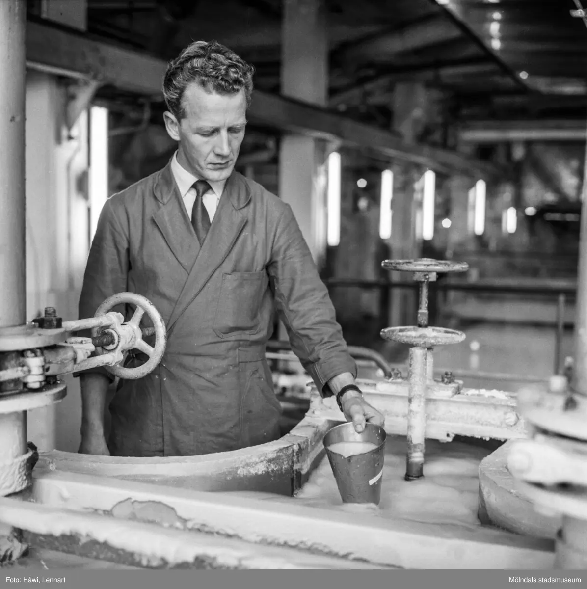 Titel: Man i arbete vid maskin på pappersbruket Papyrus i Mölndal, 15/11 1958.